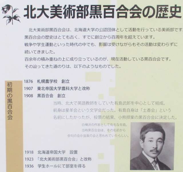 北大美術部黒百合会は、1908年(明治41年)に、有島武郎らによって設立された美術サークルです。
