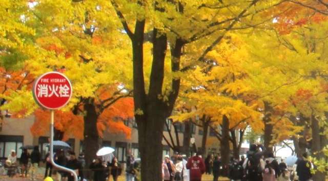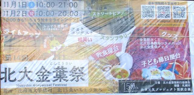 11月1日(土)・2日(日)は、第14回北大金葉祭が開催され、イチョウ並木が歩行者天国になり、出店やイベントが行われ、夜はライトアップされます。