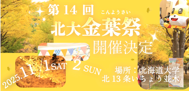 11/1(土)、11/2(日)の2日間の日程で、第14回北大金葉祭を開催します!