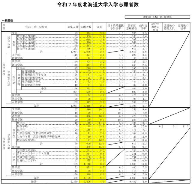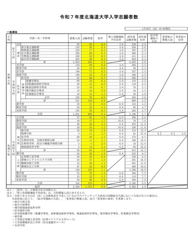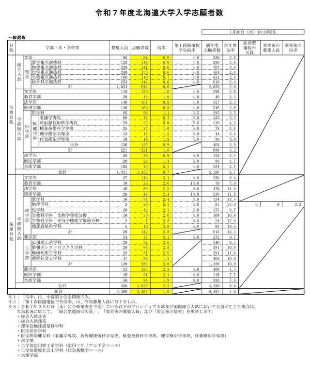 北海道大入試2025 ボーダー偏差値は文・農・薬60、獣医65、理62.5〜65