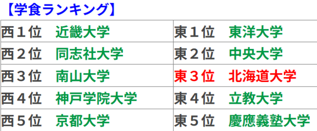 北海道大学札幌キャンパスの学食は、東日本の第3位に選ばれました。