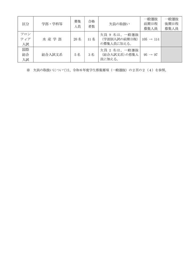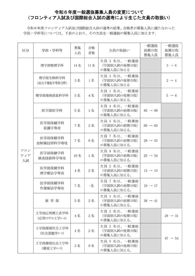 令和6年度一般選抜(後期日程)個別学力検査等の実施について