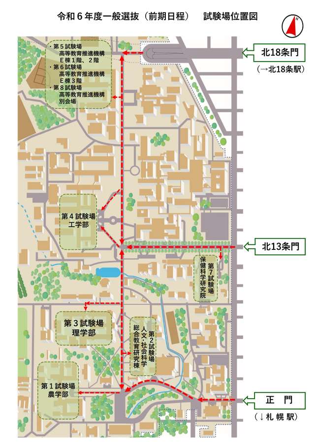 試験当日は、天候状況及びJR北海道等公共交通機関の運行状況等を確認のうえ、余裕をもって試験場にお越しください。