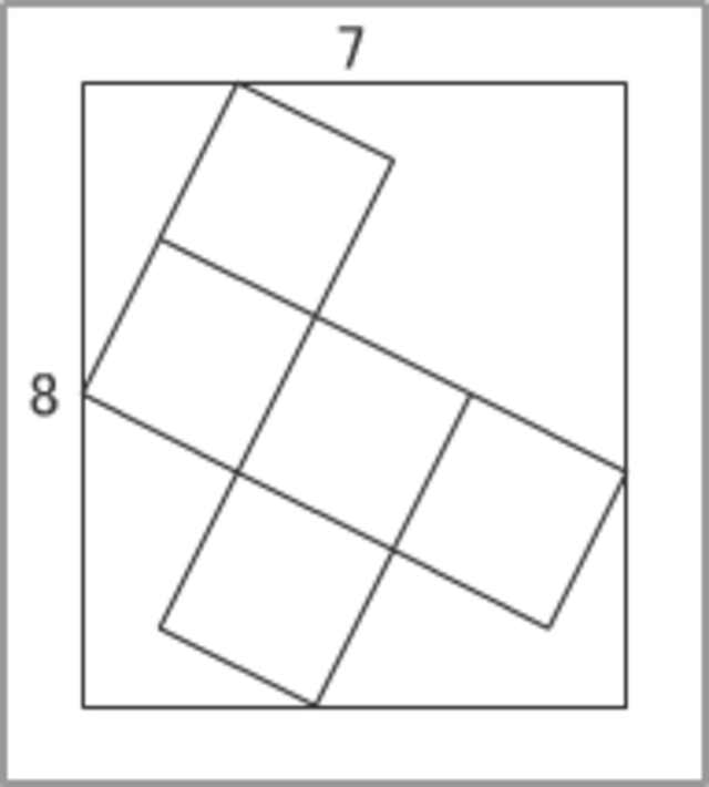 縦が8、横が7の長方形の中に図のように5つの合同な正方形が詰め込まれている。正方形の1辺の長さを求めよ。