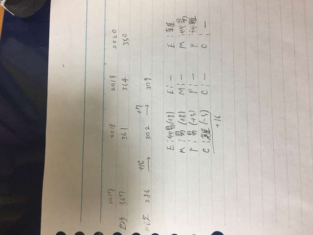 2018→2019は全て難易度が変化してないが7点変化した。これは新入試に対する安全志向による変化だと考えられる。今年はこの傾向がより強まると考えて+11くらい