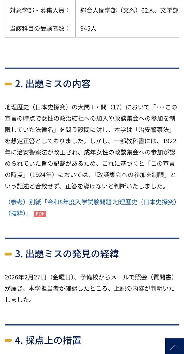 2026年2月27日(金曜日)、予備校からメールで照会(質問書)が届き、本学担当者が確認したところ、上記の内容が判明いたしました。