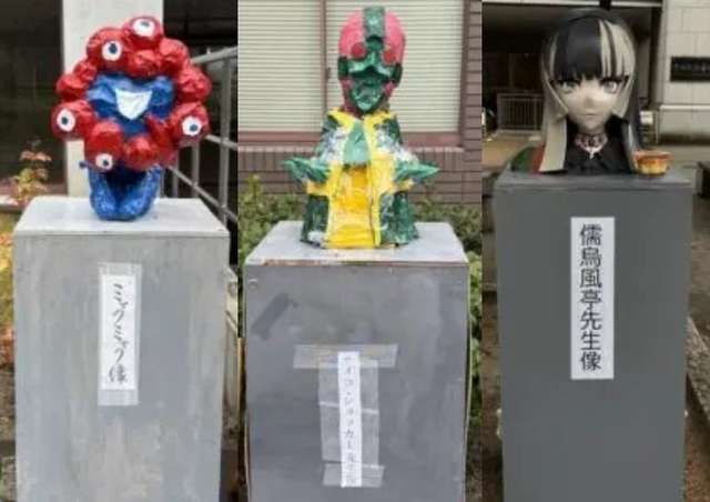メインの折田先生像(スターミー)の周囲に設置された他の3つの像は、それぞれ異なる文脈やパロディの役割を担っていると思われます
