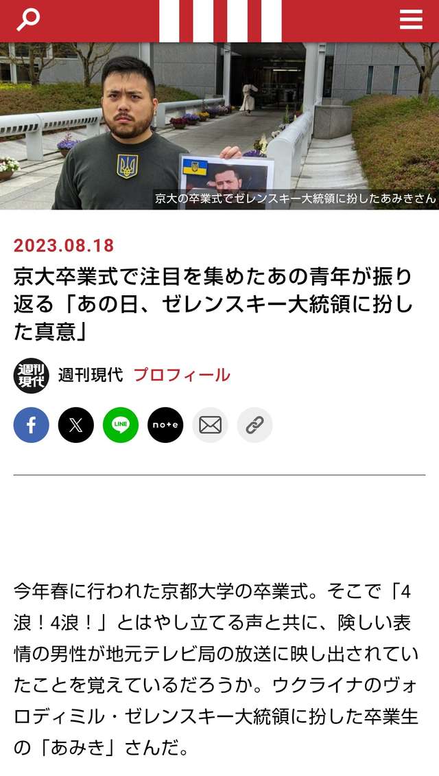 京大卒業式で注目を集めたあの青年が振り返る「あの日、ゼレンスキー大統領に扮した真意」(週刊現代) | 現代ビジネス | 講談社