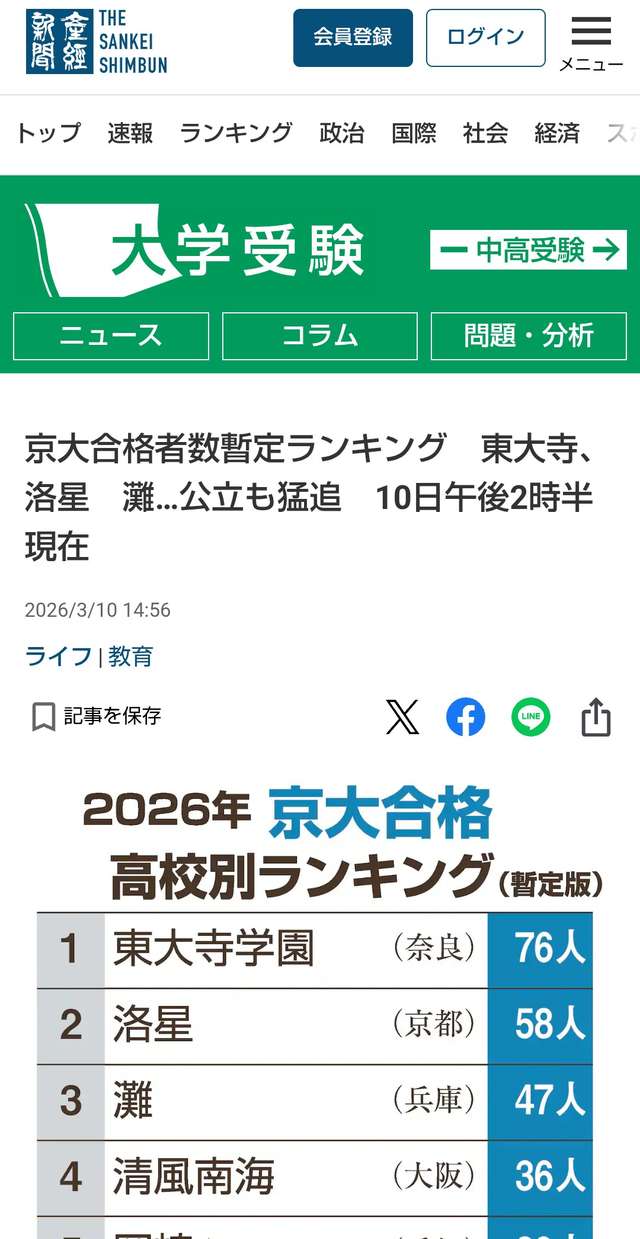 京大合格者数暫定ランキング 東大寺、洛星 灘…公立も猛追 10日午後2時半現在 - 産経ニュース