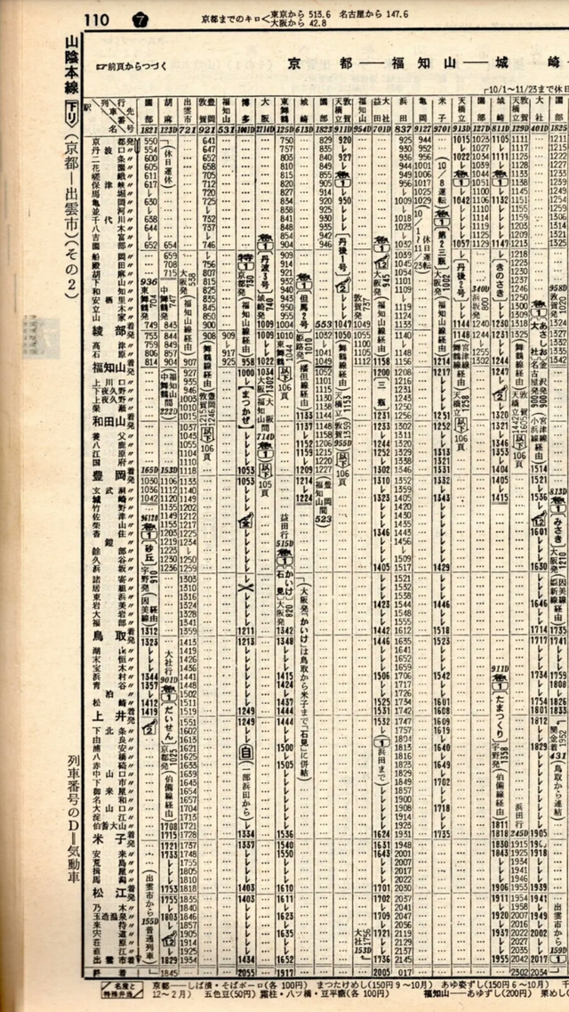 昭和の時代、京都発博多行(!!)福知山線&山陰本線経由 特急「まつかぜ」が走ってたんだって。