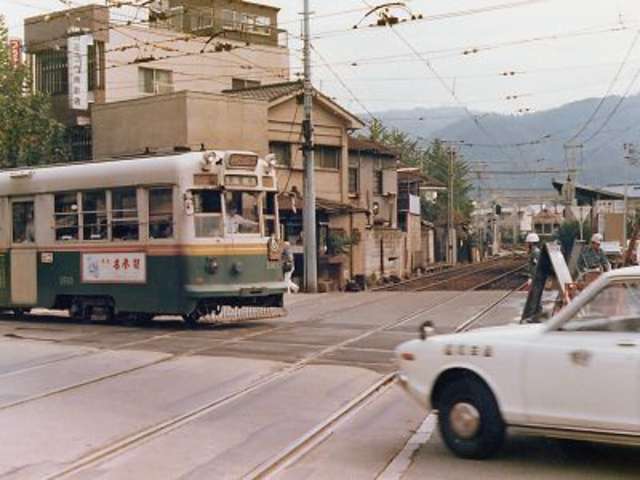 元田中で叡電が、東大路通りを踏切で横切るのは今も昔も変わらない。