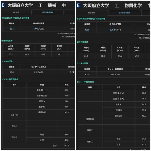 これまでの物理工と情報工に加えて、今回は新たに建築工と電電工の合格者平均点から