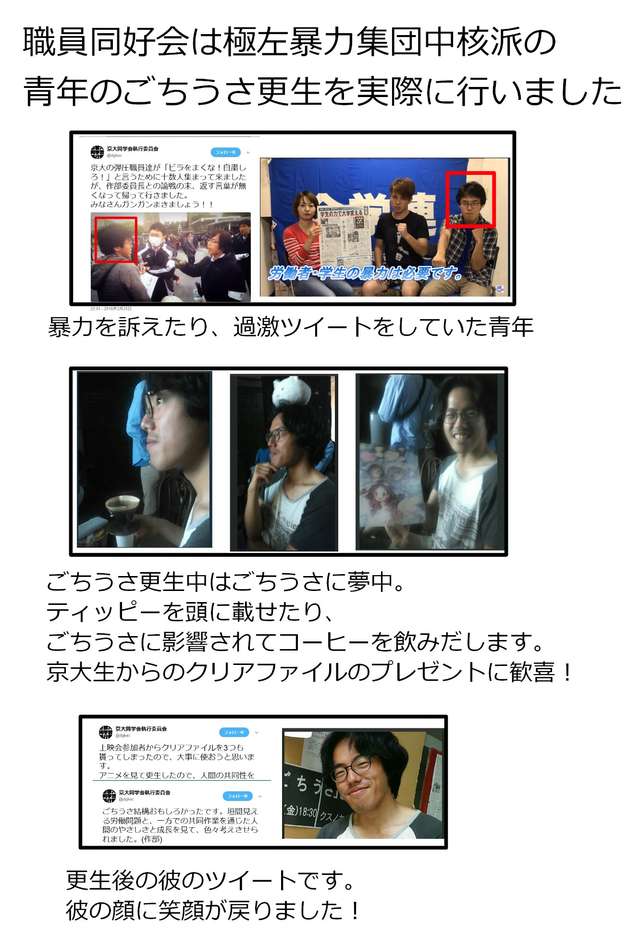 京大では京大職員会が、停学処分の学生に「ご注文はうさぎですか」というアニメを視聴させて更生させようとする謎の取り組みをしたことがあるらしいな。
