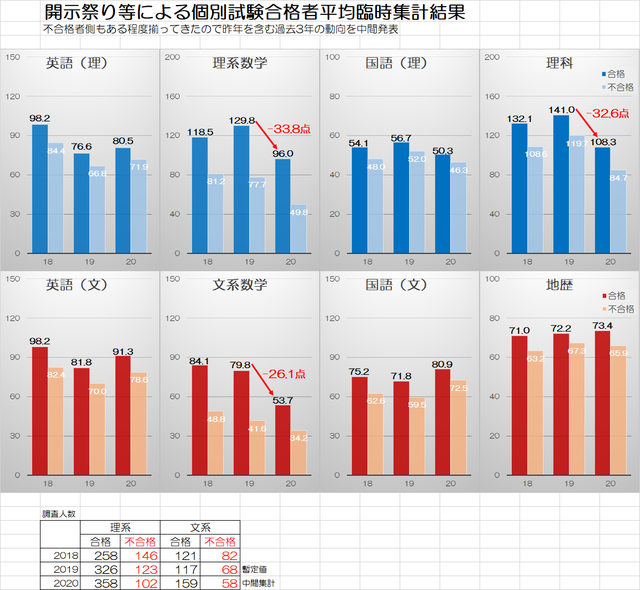 京大入試に合わせてTwitterの開示祭りから集計した科目別平均点の過去3年分を臨時に公開する