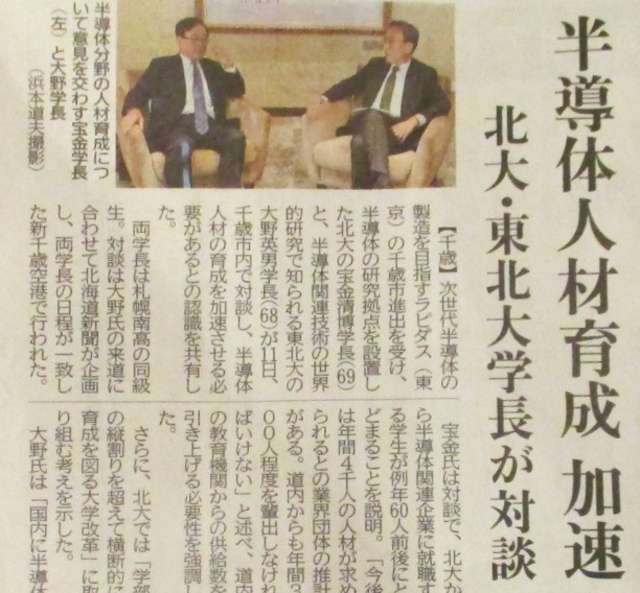 東北大学の大野総長と北大の宝金総長は、札幌南高校で同じクラスだった。