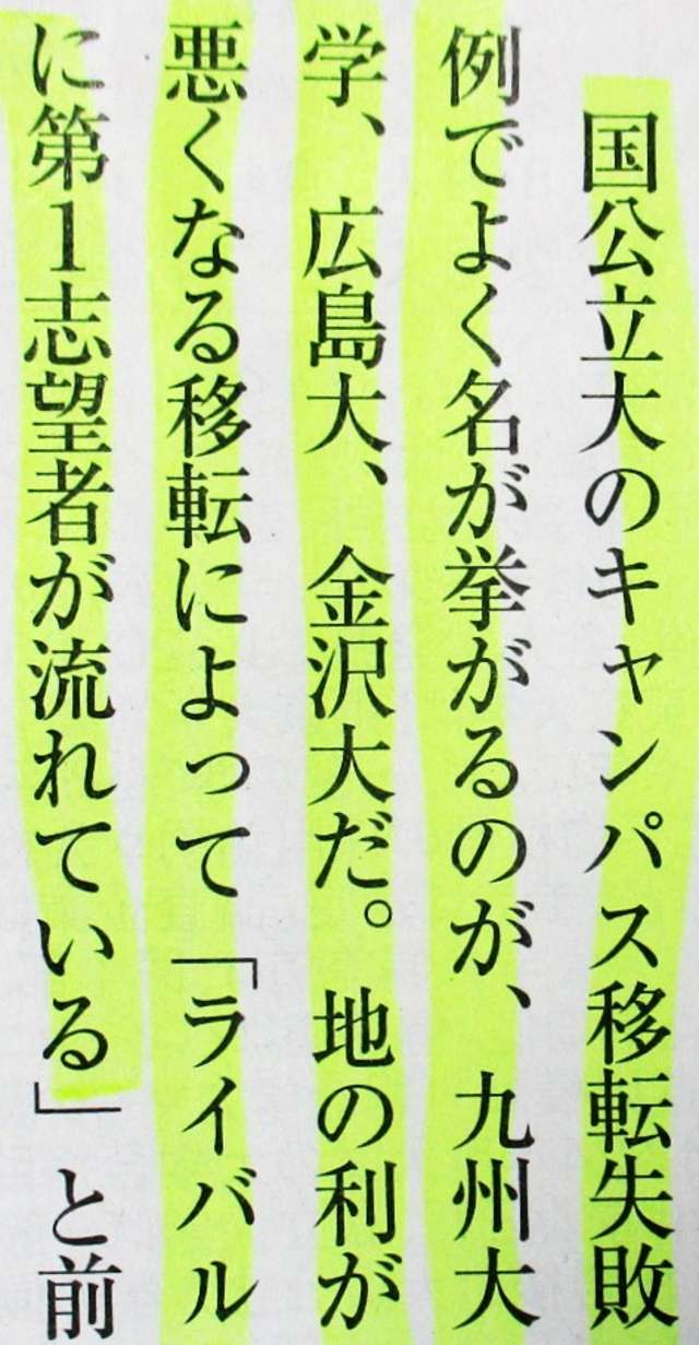 広島大学、金沢大学だ。地の利が悪くなる移転によって「ライバル