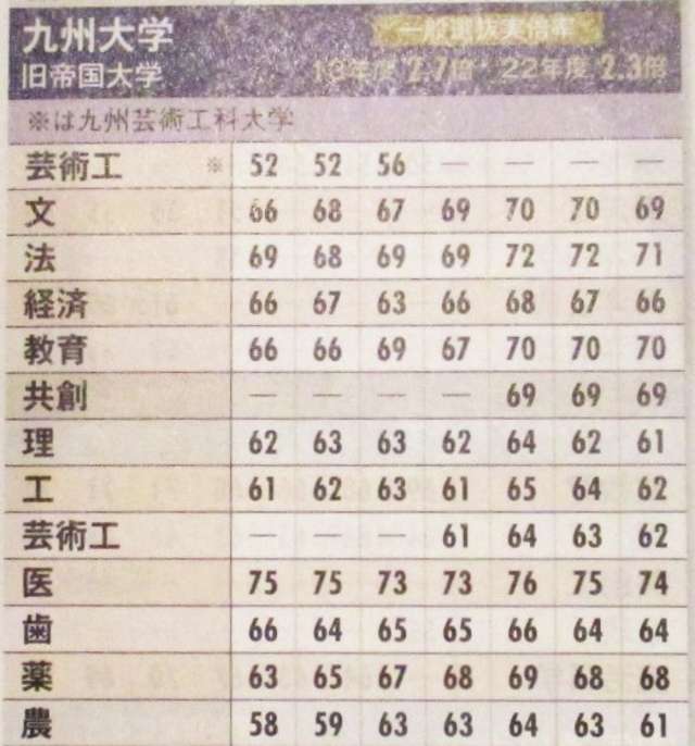 北大の偏差値が大幅に伸びて、九大を逆転した。