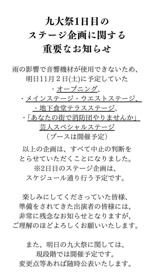 【九大祭1日目のステージ企画に関する重要なお知らせ】