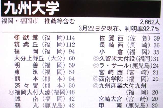 【さすが御三家】九大合格者数、御三家はいずれも増加