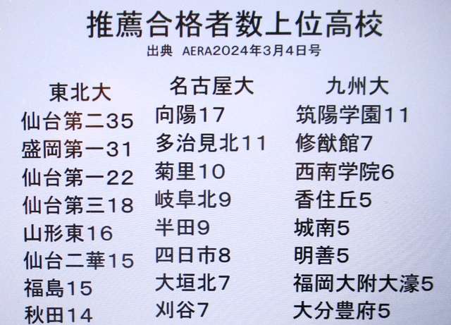 旧帝大の推薦合格者数を荒稼ぎする高校