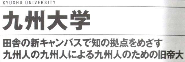 福岡市出身の私は、小さいころから「九州大学至上主義」のような教育を受けてきました。学校でも、塾でも、近所のおばちゃんも、九州大学を圧倒的に信仰。とくに九大医学部でも行こうもんなら「神様」扱い。東大文Tよりも格上とまで言われてましたからね。小学生のころ通っていた英語教室のアルバイト講師がバイリンガルな九大法学部生で、「あたしはエリートよ」的にツンツンしていたのを今でも覚えています。子どもながらに「憧れの九州大学に行けたらいいなあ〜。でも、無理だろうな…」なんて考えてたことを思い出します。まったく、今にして思えば福岡ならではの価値観だったものです。