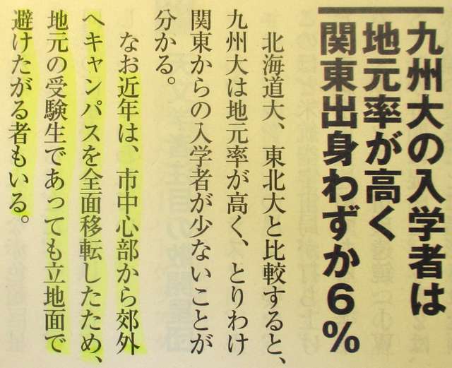 ・九州大学の入学者は地元率が高く、関東出身者わずか6%