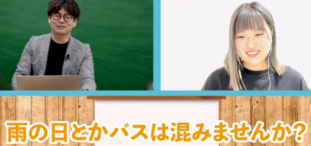 >>97 バスは混むよ。特に雨の日は順番待ちが大変。