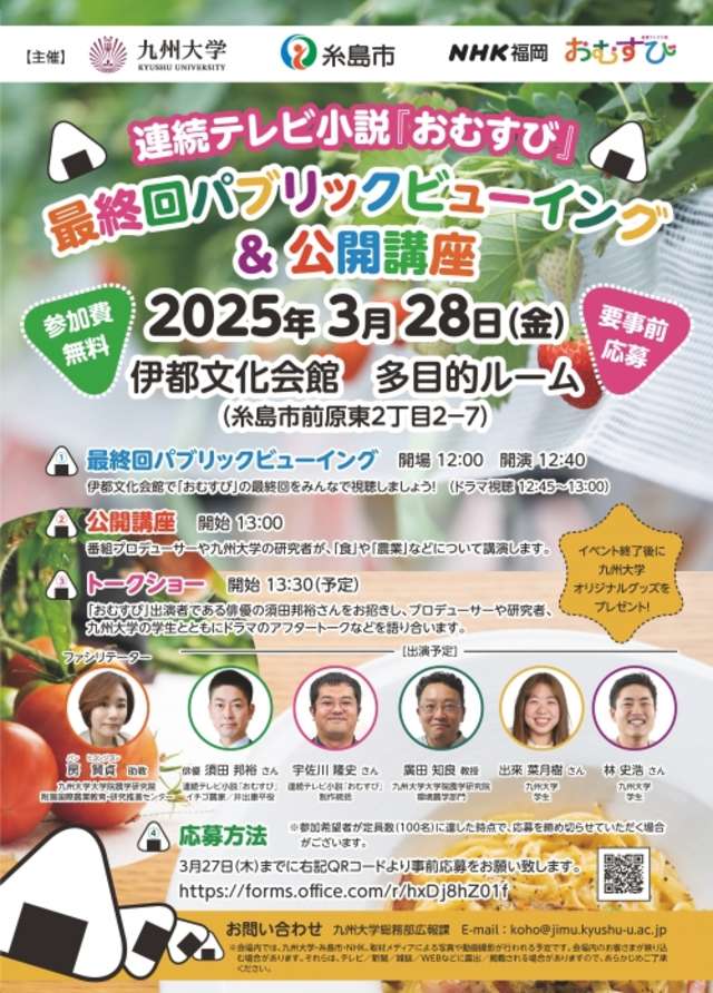 【九州大学からのお知らせ】 朝ドラ『おむすび』最終回パブリックビューイング&公開講座