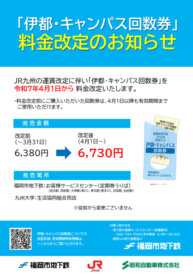 令和7年4月1日から伊都キャンパス回数券値上げいたします。