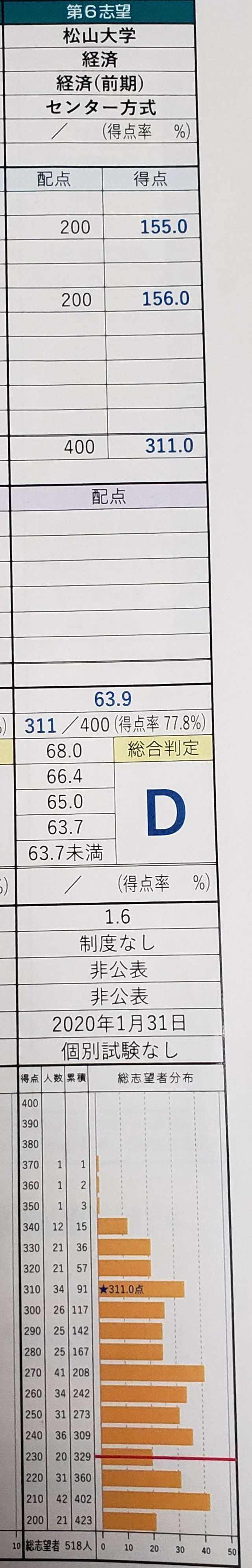 去年は松大落ちでしたが、今年は国立大学センターリサーチA判定で松大も一期で合格できました