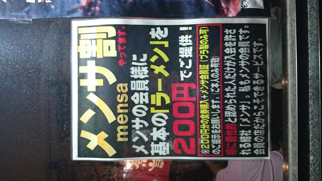 都内某ラーメン屋においてメンサ割というのをやっています。メンサ会員の会員証を見せると味噌ラーメンが300円になります。私も食べてみましたが、凄く美味しかったです♪