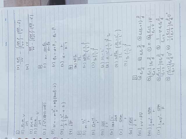 (1)mv^2/r (2)GMm/r^2 (3)√GM/r (4)2πr√r/GM (5)−GMm/r (6)√2GM/r (7)rv=RV (8)(1/2)mv^2−GMm/r (9)(1/2)mV^2−GMm/R