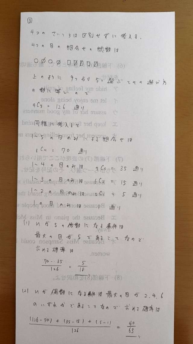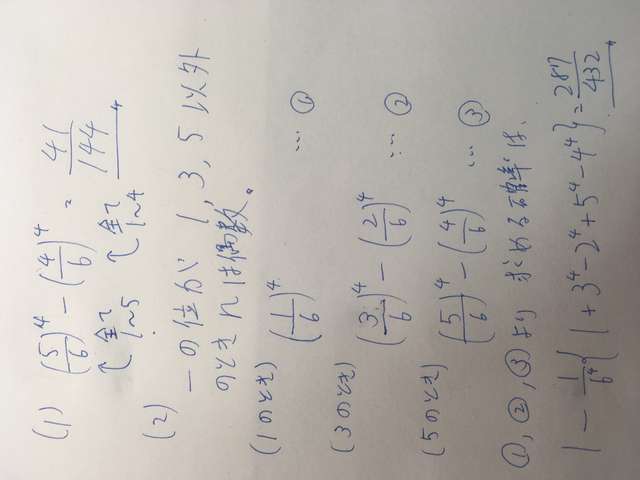 2018年度宮廷落ち後期信大入学の者だが、(1)は5が少なくとも一回出て、かつ6が一回もでない確率、(2)は6が少なくとも一回出る、もしくは4以下しか出ず、一番大きな数が1か3でない確率を求めたらどうじゃ?