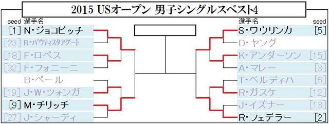 USオープンは大会10日目で準々決勝が終了しベスト4が出揃いました。