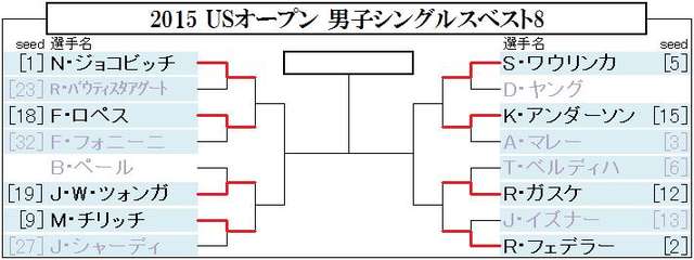 USオープンは大会8日目で4回戦が終了しベスト8が出揃いました。