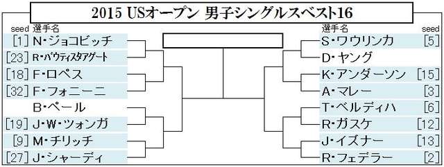 USオープンは大会6日目が終了しベスト16が出揃いました。