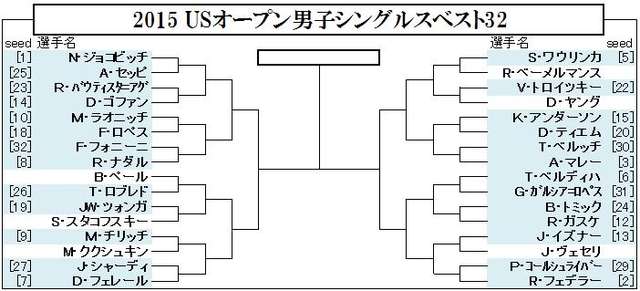 今年は波乱が少なくシードされた32人のうちベスト32に残れなかったのは6人だけです。