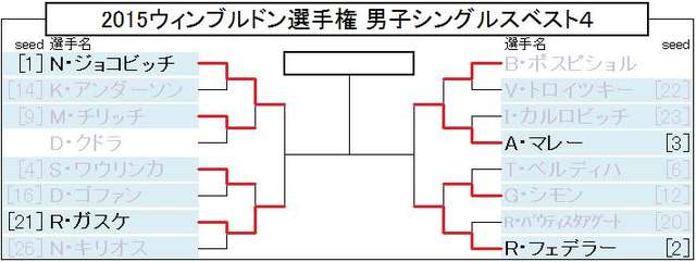 この結果、準決勝でBIG4同士が激突するボトムハーフよりトップハーフにいるジョコビッチが有利ではないかと思われています。しかしガスケも侮れない選手ですのでどの試合も楽しみです。