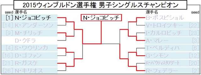 ボトムハーフとは下表の右側でボトムハーフの一番下には第2シードが位置します。