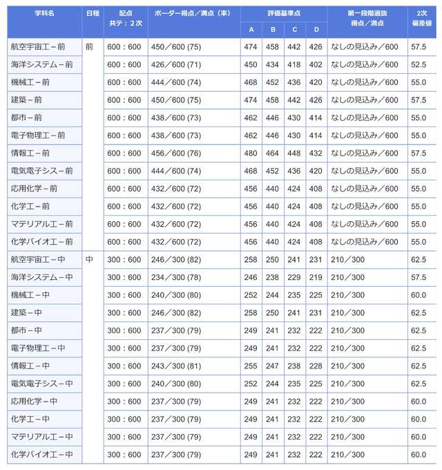 共通テスト得点率 工学部 共テ得点率 71%〜82%