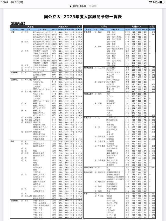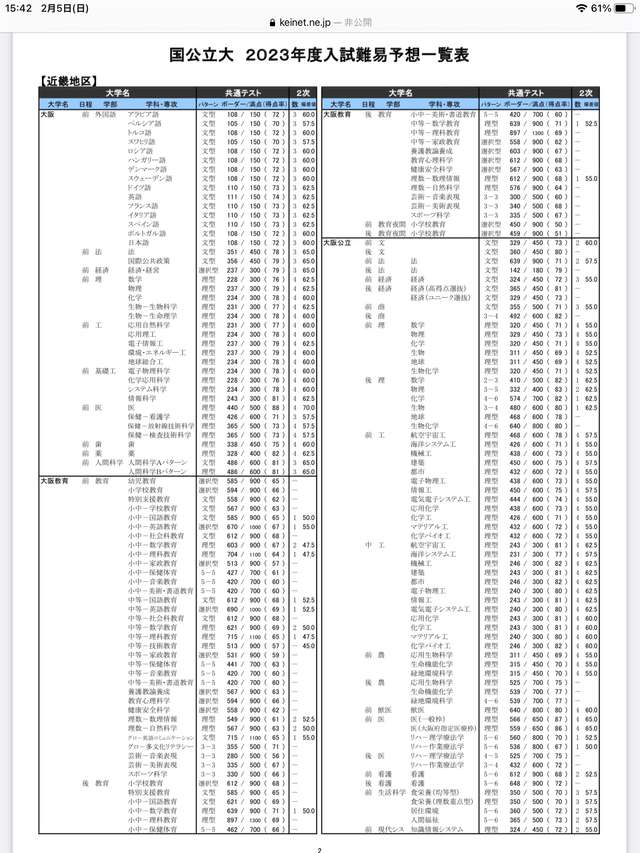 東工大、阪大、名古屋、筑波クラスや神戸大の最難関学科を軽く超えとる