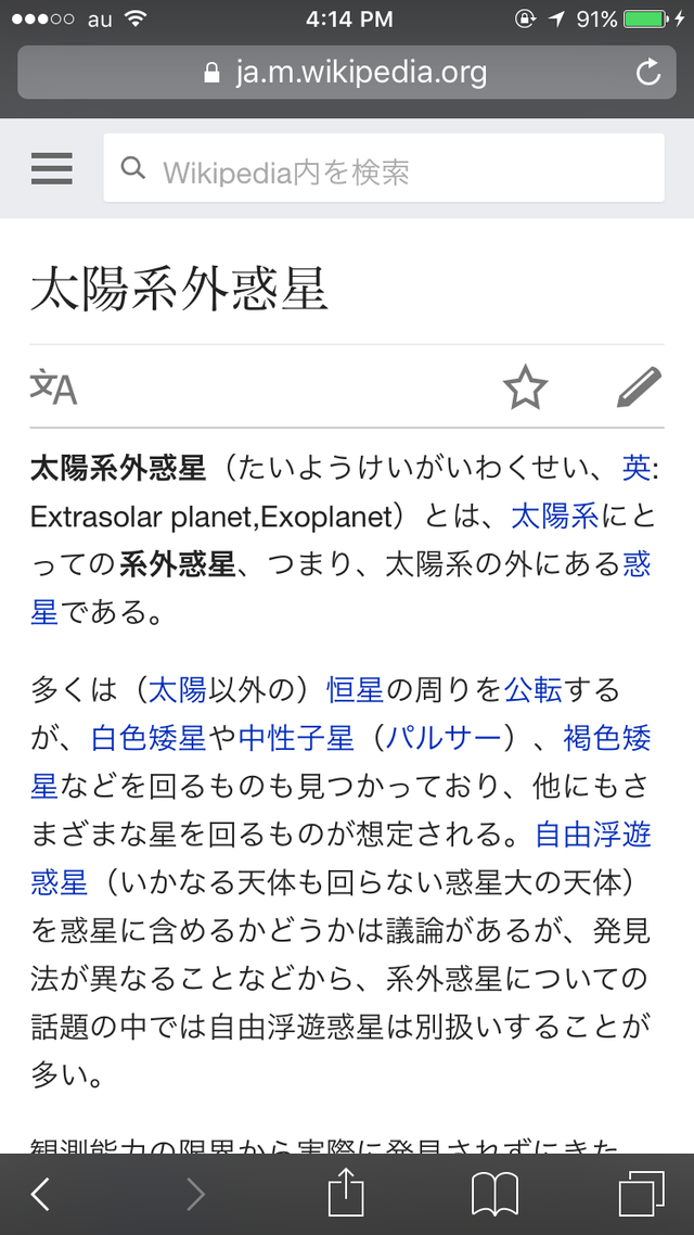 >>186あとWikipediaで調べたらexoplanet(太陽系外惑星)は太陽系の外側にあるって書いてるねん